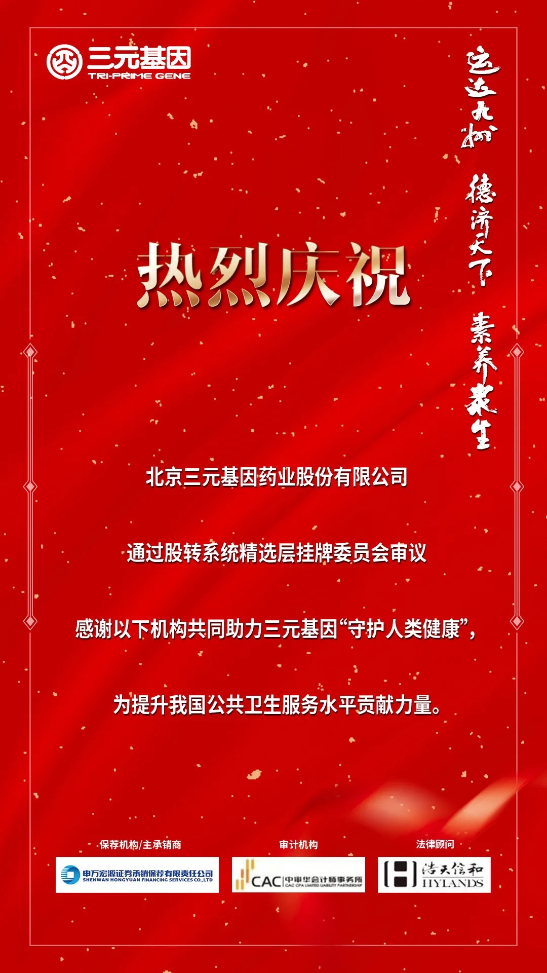 2020年11月13日,北京三元基因藥業(yè)股份有限公司(簡稱:三元基因)正式通過2020年第25次股轉(zhuǎn)系統(tǒng)精選層掛牌委員會審議!