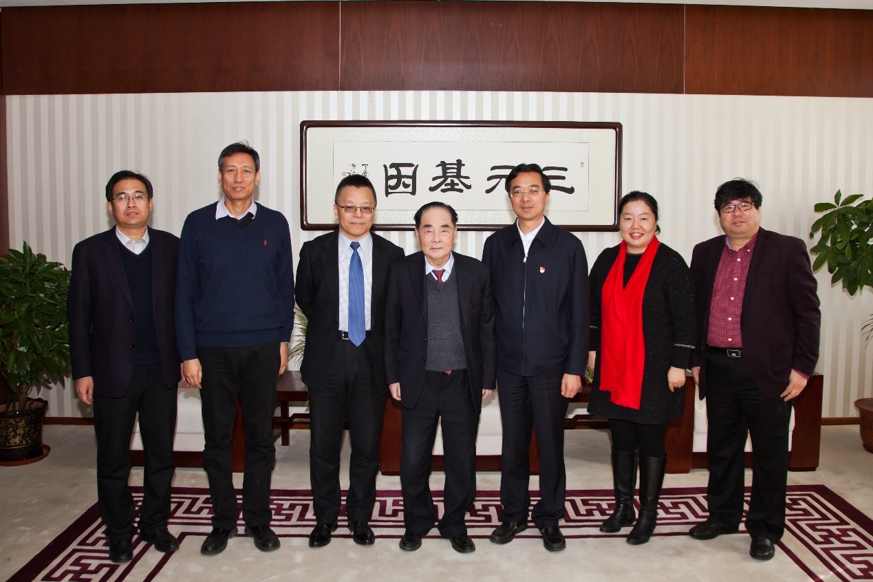 2018年2月12日,北京市大興區(qū)區(qū)委副書(shū)記、區(qū)長(zhǎng)、開(kāi)發(fā)區(qū)工委副書(shū)記王有國(guó)一行蒞臨三元基因,親切會(huì)見(jiàn)和慰問(wèn)了三元基因創(chuàng)始人、首任董事長(zhǎng)侯云德院士,熱烈祝賀他榮獲2017年度國(guó)家最高科學(xué)技術(shù)獎(jiǎng);認(rèn)真聽(tīng)取了董事長(zhǎng)兼總經(jīng)理程永慶關(guān)于三元基因發(fā)展規(guī)劃的匯報(bào),并指示有關(guān)部門(mén)全力支持并高效落實(shí);同時(shí)代表區(qū)委、區(qū)政府向三元基因全體員工提前送來(lái)了新春祝福。陪同的領(lǐng)導(dǎo)有大興區(qū)副區(qū)長(zhǎng)楊蓓蓓,大興區(qū)科委主任蘇榮、大興生物醫(yī)藥產(chǎn)業(yè)基地主任田德祥、大興新媒體產(chǎn)業(yè)基地主任宋強(qiáng)等。