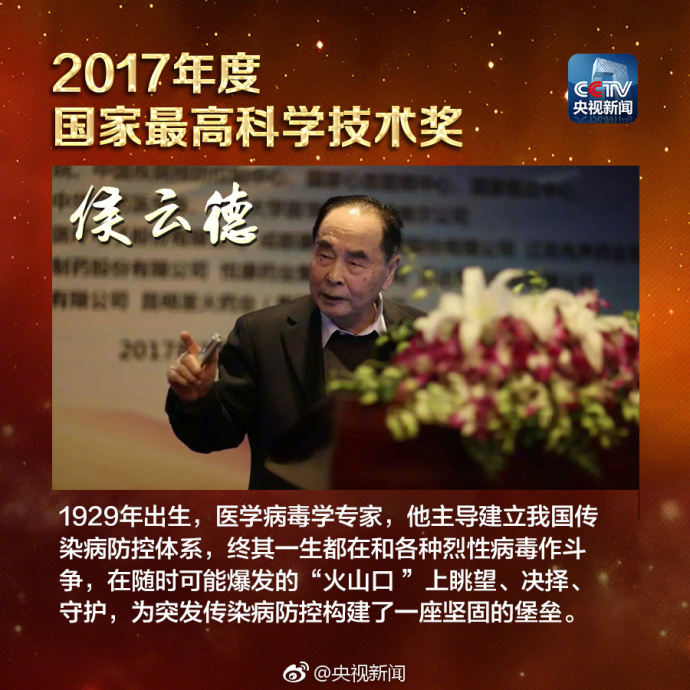 他,是2017年度國家最高科學技術獎獲獎者—侯云德院士。