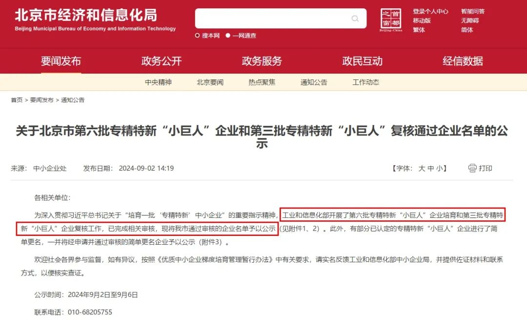 (北京市經信局公示工信部第六批專精特新“小巨人”企業和第三批專精特新“小巨人”復核通過企業名單,三元基因入選)