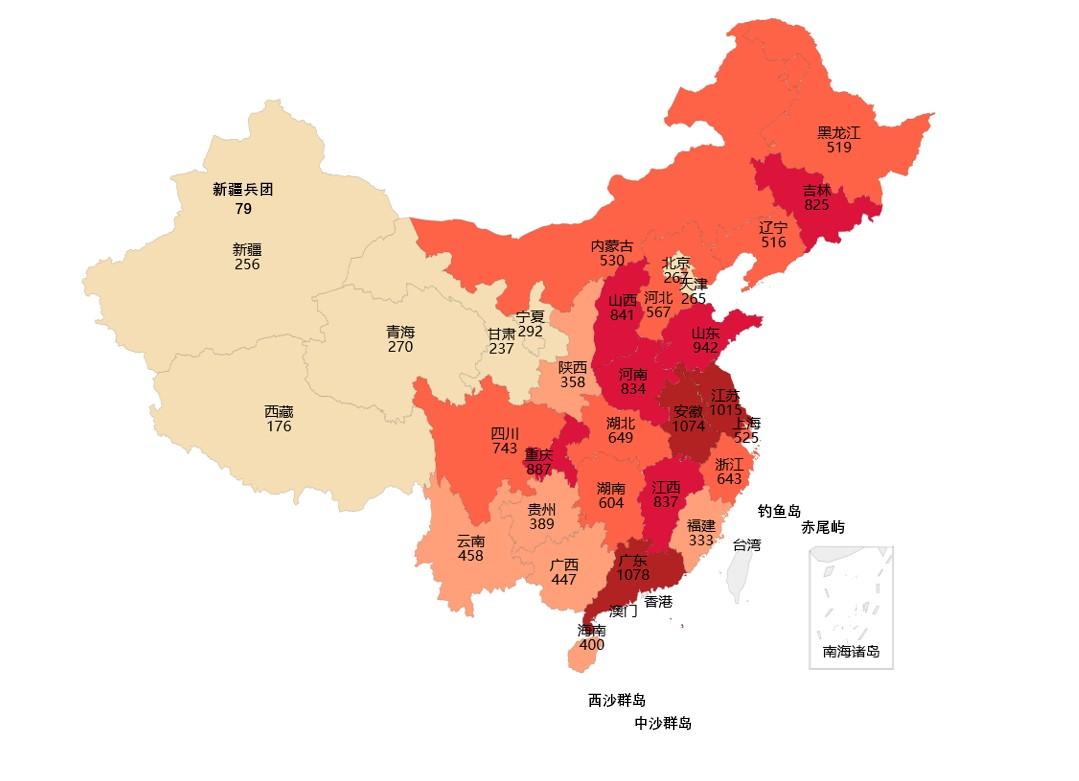 2021年國家藥品抽檢共抽取制劑產(chǎn)品與中藥飲片品種139個,包括化學(xué)藥品81個、中成藥46個、中藥飲片9個、生物制品3個,其中國家基本藥物品種53個;共抽檢樣品17856批次,包括生產(chǎn)環(huán)節(jié)3965批次、經(jīng)營環(huán)節(jié)12409批次、使用環(huán)節(jié)1250批次和口岸環(huán)節(jié)232批次(見圖1),涉及1113家藥品生產(chǎn)企業(yè)、2085家藥品經(jīng)營企業(yè)和486家藥品使用單位,各省(區(qū)、市)樣品抽取情況以及所抽取樣品的標(biāo)示生產(chǎn)企業(yè)所在地區(qū)抽樣分布情況,分別見圖2與圖3。