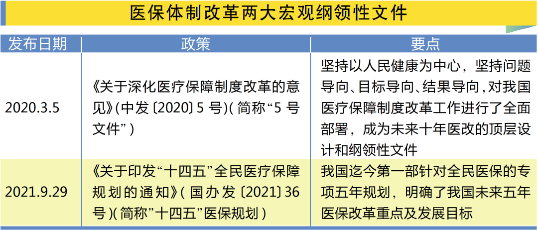 5號文件和“十四五”醫保規劃是醫保體制改革的宏觀綱領性文件,為醫保改革指明了方向。筆者綜合分析醫保改革的政策要求及2022年的工作重點,總結出醫藥企業需要緊密關注的六個變量及發展趨勢。
