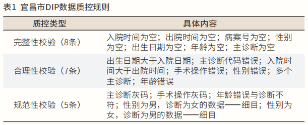 一是實時校驗數據,建立質控流程。包括數據上傳、數據校驗、反饋修訂。第一,數據上傳。包括建立數據上傳流程,明確上傳時限。贛州要求確保醫保住院患者費用結算后10日內完成上傳、修訂,過期不允許再上傳,未上傳數據按零元撥付。宜昌要求定點醫療機構于患者出院結算后7日內上傳醫保結算清單等數據信息,清單數據與結算數據保持一致。2021年下半年,宜昌納入DIP結算的病例約為30萬例,其中按要求及時上傳醫保結算清單的病例約為27萬例,占納入DIP結算病例總數的90%。第二,數據校驗。包括校驗規則和校驗方式。校驗規則方面,宜昌建立了3大類20條質控規則,運用DIP支付與管理系統,對定點醫療機構每日上傳的結算清單數據全量開展質量校驗(見表1)。2021年下半年,宜昌共校驗結算清單數據30萬余條,發現問題數據34785條,占結算清單數據總數的11.3%。校驗方式方面,贛州通過阻斷性校驗和選擇性校驗進行數據質控,抽查病案數量覆蓋全市病案數量的10%—20%。聚焦醫保結算清單問題,引導醫療機構填寫規范,提高數據質量,夯實數據基礎。第三,反饋修訂。在完成醫保結算清單數據校驗后,將校驗結果實時反饋給定點醫療機構,定點醫療機構在規定時間內根據反饋問題修訂醫保結算清單并重新上傳,提高數據的上傳率、入組率、準確率,形成閉環循環質控機制。在此基礎上,贛州與醫療機構建立溝通機制,定期匯總數據填報問題,為醫療機構答疑解惑,敦促醫療機構進行數據整改;邢臺基于數據質控進行分組后,公示分組結果,針對醫療機構提出異議的分組結果及修改意見,組織專家評議決定是否采納,按照最終分組結果確定結算方案(見圖1)。